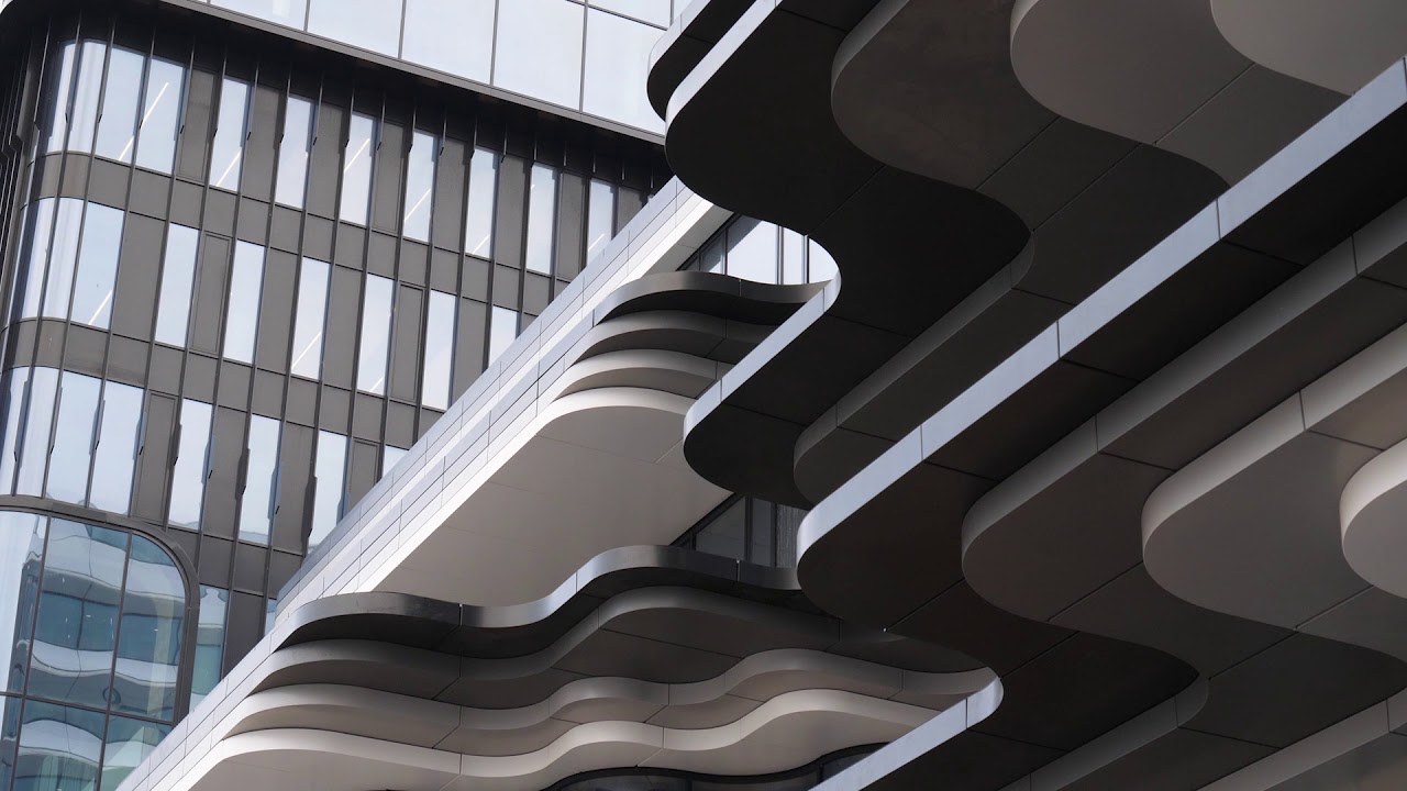 De drie gebouwen zijn met elkaar verbonden door middel van loopbruggen. De gebouwen, met elk een geheel eigen architectuur, zijn ontworpen door MVSA Architects. Deze uitdagende gevels zijn ware kunstwerk. Kijk bijvoorbeeld eens naar de voorgevel van DK125! De meerkleurige gevelbanden verlopen met tientallen verschillende radii vloeiend in elkaar over. Iedere verdieping, iedere kleur geheel uniek. Een super prestatie van formaat!