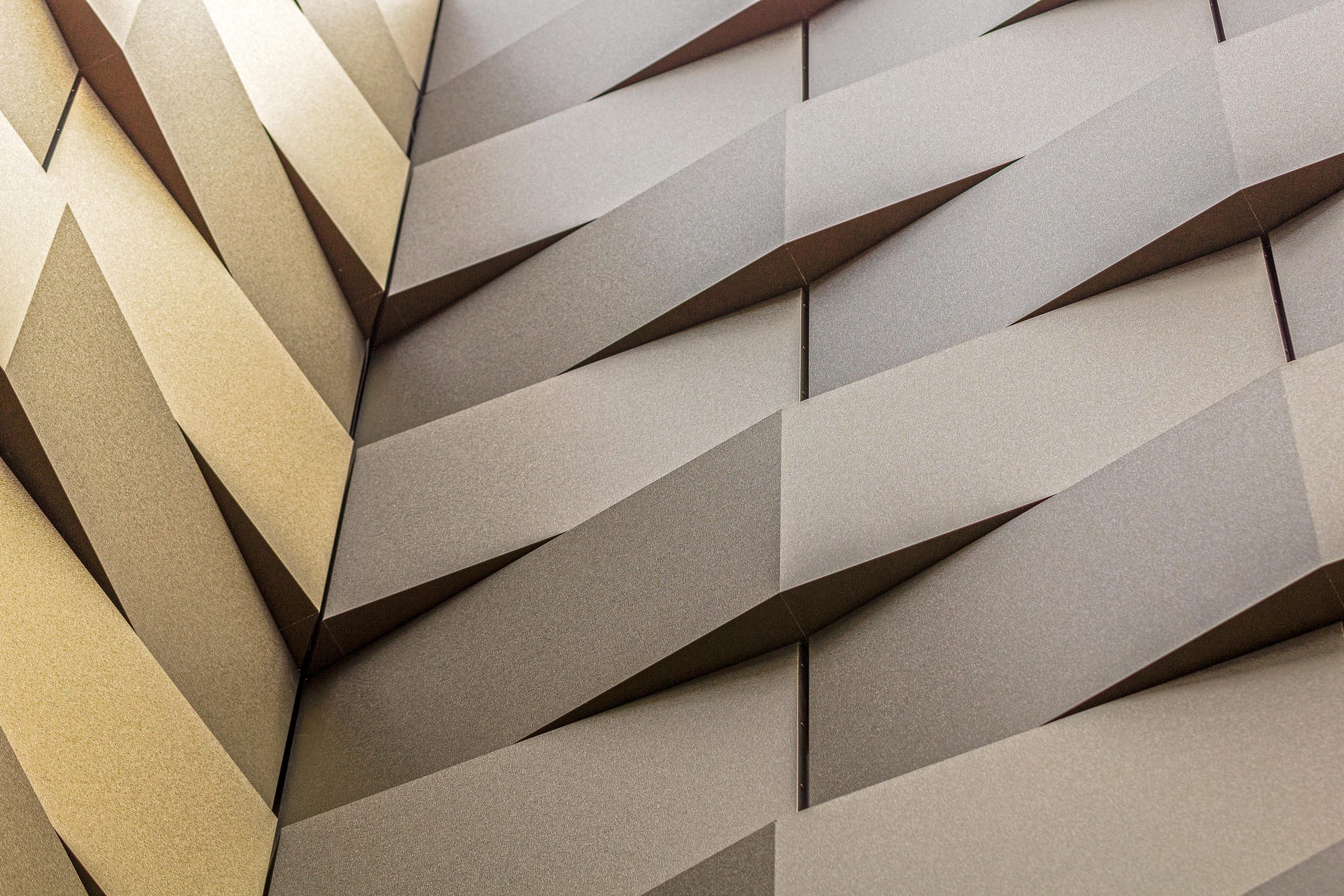 Door het Alucobond-element met behulp van een CNC-frees te bewerken, kunnen er ook complexe vormen gerealiseerd worden. Haro Coolen: “We hebben in Facademaker de grenzen van het materiaal opgenomen, zodanig dat de architect kan spelen met de eigenschappen én vlakverdeling. Eerst bepaalt hij een kleur en vervolgens kiest hij voor één of meerdere frezingen (met variabele diepte) in het element. Die frezingen vervormen het paneel en verdelen het in vlakken, al dan niet in variabele hoeken. Zo kan er veel meer diepte worden gegeven aan het gevelbeeld en ontstaat een levendige en dynamische gevel.” Als de architect eenmaal de beoogde set-up heeft bepaald, wordt het door Alucobond omgezet in een digitaal bestand, waarna het als BIM-object over de gevel heen gelegd kan worden. “De gedachte achter Facademaker is bovendien dat we architecten kunnen begeleiden vanaf de eerste schetsen tot aan de opdracht. We leveren desgewenst ook nog testcassettes voor een eventuele mock-up vaak in samenwerking met onze locale partners.”