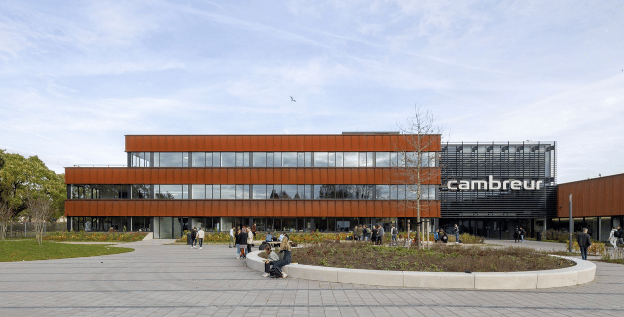 Het nieuwe Cambreur College geeft huisvesting aan mavo, havo en vwo en is met zijn flexibele indeling altijd klaar voor de toekomst. Bij meer of minder leerlingen per afdeling is de indeling gemakkelijk aan te passen. De nieuwe school is licht en ruimtelijk, terwijl het toch het kleinschalige karakter van de oudbouw behield. Waar mogelijk is ingezet op hergebruik, variërend van twee grote gymlokalen tot de stoeptegels van het oude schoolplein. Ook de bestaande grote bomen zijn behouden.