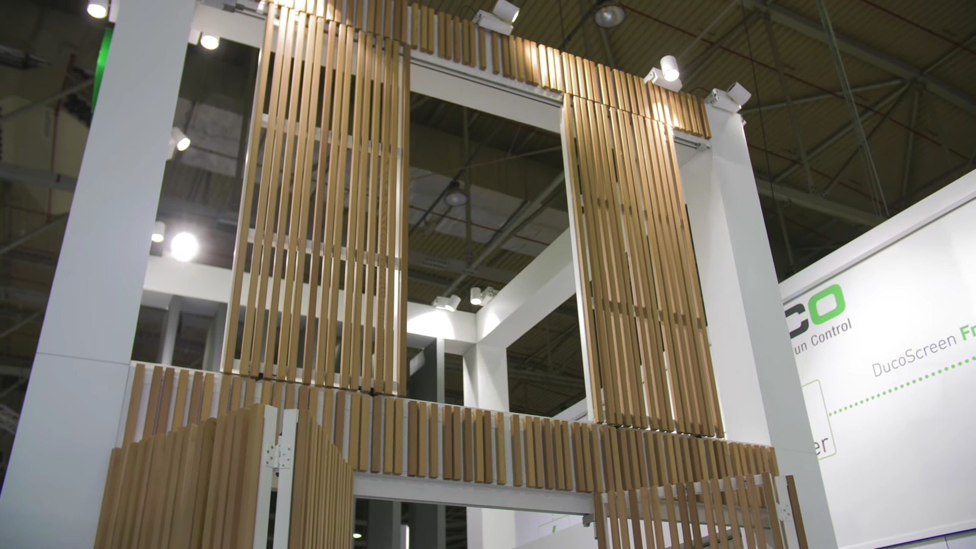 Wie een architecturale zonweringoplossing zoekt, was tijdens GEVEL 2020 op de stand van Duco Ventilation & Sun Control aan het juiste adres. Op de beursvloer presenteerde Duco de architecturale schuifpanelen DucoSlide Wood Vertical. Verder zijn overbruggingen tot 6 meter hoogte voortaan mogelijk met de architecturale zonwering DucoSun Cubic Design en DucoSlide LuxFrame XXL.