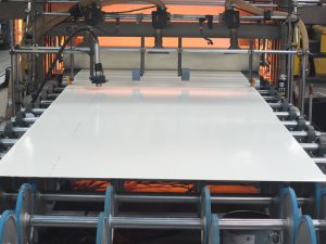 “Omdat we merken dat kunststof in rap tempo terrein verliest aan aluminium, boren we bewust een andere markt aan. Een nichemarkt zelfs. De aanschaf van deze nieuwe machine is daar een logisch gevolg van. Zo kunnen we inmiddels gipsplaten met isolatie verlijmen maar ook glasplaten of andere materialen. We werken snel, zijn prijstechnisch interessant en winnen gestaag aan terrein in de Nederlandse markt. Daar zetten we ook bewust op in, omdat de Belgische markt nog wat achterblijft in groei,” aldus Jean-Pierre. “Het werkt overigens als een vicieuze cirkel: omdat we veel foliekleuren op voorraad hebben, weten ook partijen die zélf zo’n machine hebben staan, ons te vinden. Dat maakt het voor ons dan weer mogelijk om verschillende opdrachten met elkaar te combineren, waardoor het voor ons interessant blijft om een relatief grote hoeveelheid op voorraad te houden.”
