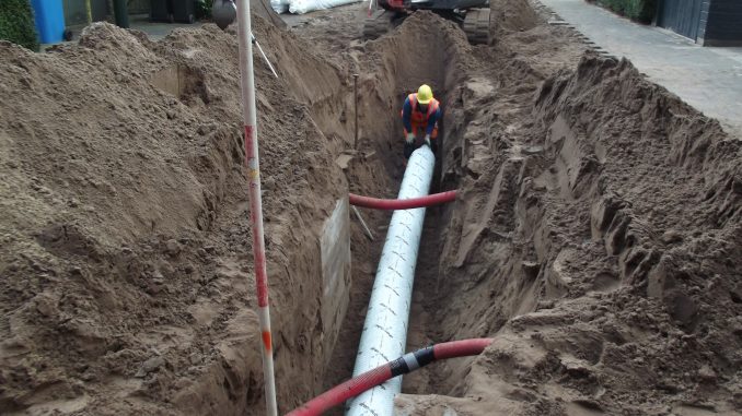 Een traditionele grindsleuf verliest na een jaar of tien tot vijftien zijn werking als gevolg van het dichtslibben door vervuiling, vertelt Hasselaar. “Schoonmaken is dan nauwelijks nog mogelijk. Door de gladde binnenzijde van de buis raakt de Drenotube® minder snel vervuild. Dat geeft minder werveling en verstoring van de waterstroom. Omdat de onderzijde open is, spoelt slib en vuil eenvoudig weg de bodem in. Bovendien is de doorloop ook groter dan van een traditionele drainbuis. Drenotube® is leverbaar in twee sterkteklassen: SN4 en SN8. De eerste is door zijn flexibele karakter ook geschikt om onder of tussen kabels en leidingen door te wurmen, daar waar je met een traditionele grindsleuf niet weg komt.”