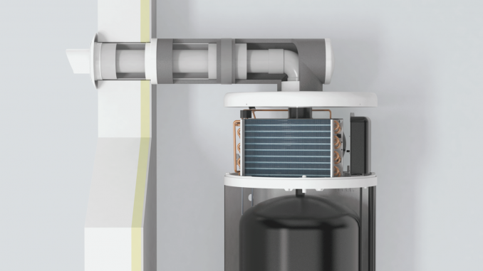 De transitie naar gasloos is in volle gang. Om ook voor de bereiding van warmtapwater niet meer afhankelijk te zijn van de gasketel, heeft Vaillant de warmtepompboiler aroSTOR ontwikkeld. “De installatie produceert warmtapwater uit vrij beschikbare energie in de vorm van binnenlucht óf buitenlucht,” legt Van der Winden uit. “aroSTOR is een individueel product waarbij boiler en warmtepomp zijn gecombineerd in één behuizing. Het is een kwestie van de binnenkomende waterleiding erop aansluiten, alsmede de warmwaterleidingen naar de badkamer, keuken, enz., de stekker erin en draaien maar. De aanvoer en afzuiging van de lucht verloopt via een concentrisch kanaal, vergelijkbaar aan de rookgasafvoer van de combiketel. Voor ‘gratis’ koeling zou je ook een bypass kunnen maken om de koele lucht in de zomer de woning in te blazen.”