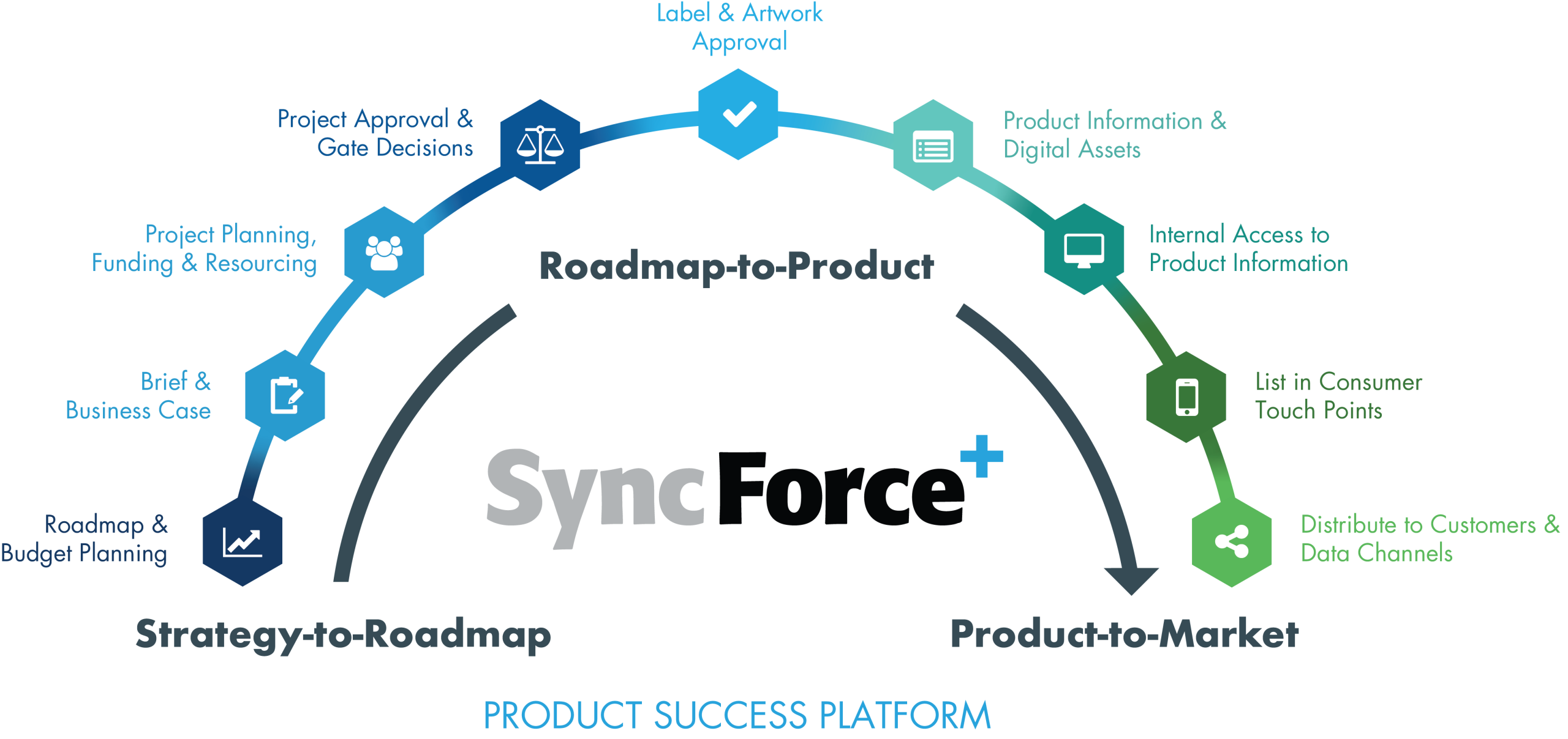 Om als fabrikant succesvol nieuwe producten te lanceren, is het belangrijk om binnen het productontwikkelproces samen te werken aan alle activiteiten van eerste idee tot ‘listing’ van het product in alle online en offline marketing- en saleskanalen. Het parallel ontwikkelen van zowel het fysieke als het digitale product (van productomschrijvingen tot instructievideo’s, certificaten en vertalingen) verkort tevens de ‘time to market’. Dat gaat volgens Paul Oudenhooven van SyncForce niet met losse software-oplossingen. De meeste fabrikanten werken nog met verschillende pakketten, zoals een PIM, DAM, LAM, PPM of PLM. Al deze software-oplossingen bevatten belangrijke productinformatie en moeten dus aan elkaar worden gekoppeld. Een losse PIM (Product Informatie Management Systeem) is in zijn ogen dan ook een achterhaald medium voor fabrikanten. Hij pleit voor een zogenaamd Product Success Platform dat een fabrikant faciliteert vanaf het eerste idee tot aan de uitfasering van een product.