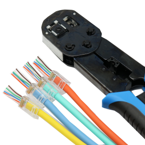 Onze ontwikkelingen zijn er vooral op gericht om het werkende leven van de elektro-installateur aangenamer te maken, begint Nick van de Klundert van Klemko Elektrotechniek. “Doel is om sneller te kunnen werken zonder in te boeten op kwaliteit. Sterker nog, met onze nieuwste sperkrimptang staat de kwaliteit buiten kijf. De installateur hoeft niet meer te friemelen met de acht adertjes in de RJ-connector. Hij stript de buitenmantel van de adertjes, steekt ze volledig door de speciale connector en krimpt vervolgens met dezelfde tang de connector vast. De uiteinden van de adertjes worden in diezelfde beweging afgeknipt. De adertjes hoeven niet meer vooraf op lengte te worden geknipt. Het bespaart niet alleen tijd, maar de installateur is bovendien verzekerd van een betrouwbare connectie.” De sperkrimptang is geschikt voor zowel UTP/FTP RJ12/11EZ en RJ45EZ connectoren als voor de standaard modulaire UTP/FTP RJ11, RJ12, RJ45 connectoren.