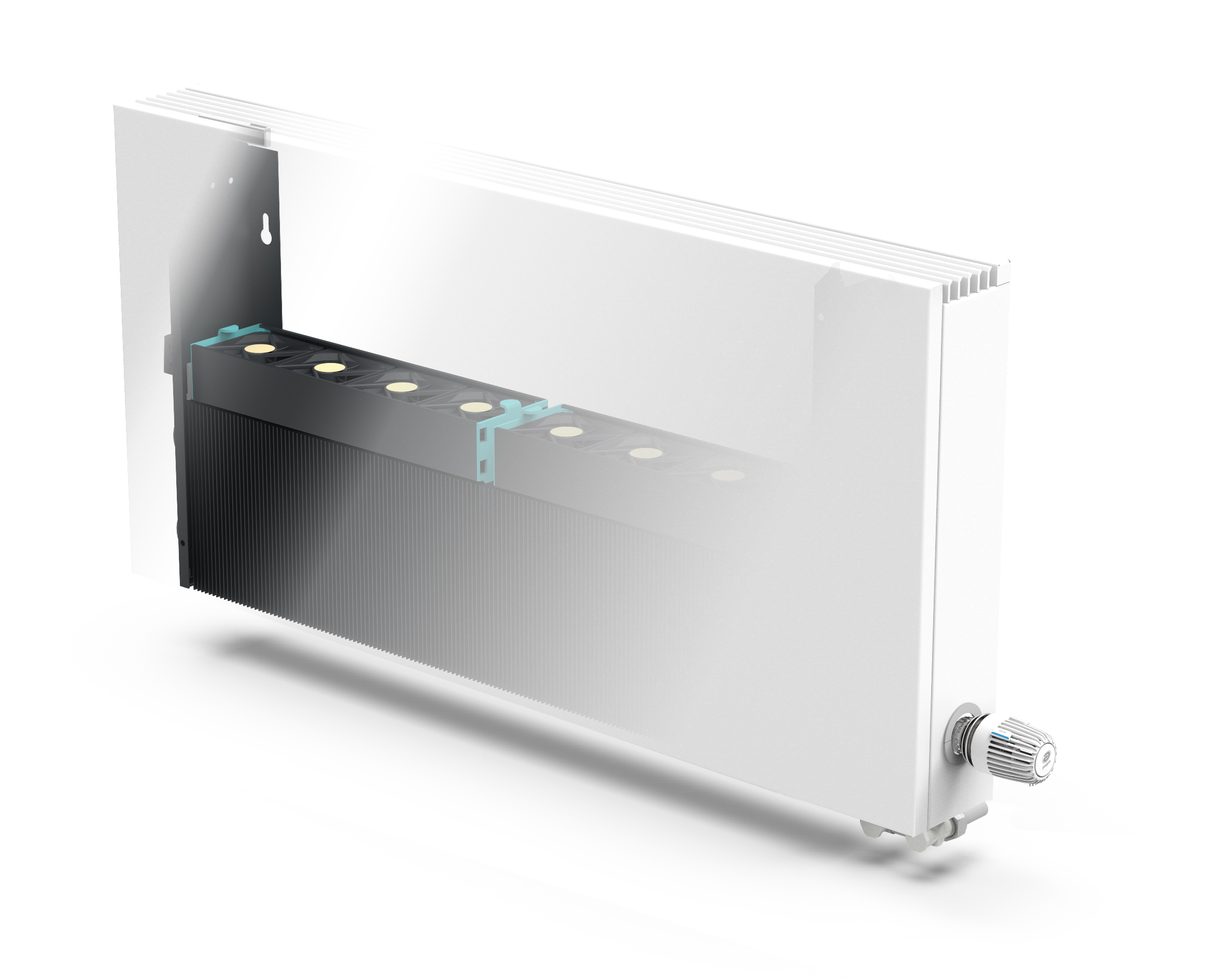 Dat alles-in-een product heet Strada Hybrid. Heerius: “Het systeem combineert de functies van koelen, ventileren en verwarmen in één behuizing. Dat biedt vooral voordelen bij renovatietoepassingen, waar het aanleggen van ventilatiekanalen een moeilijke opgave is. Met de Strada Hybrid vervang je de bestaande radiator en haal je meteen (door de muur) verse lucht in huis.” Het systeem is volgens Heerius eenvoudig te installeren en kan zelfs standalone uitgevoerd worden met een interne regeling voor ventilatie. “Omdat al onze producten voorzien zijn van koper-aluminium wisselaars kunnen ze uit de voeten met zowel laag- als hoog-temperatuur water. Deze LOW-H2O techniek laat het toe om de producten te combineren met een cv-ketel, maar ook met een warmtepomp.”