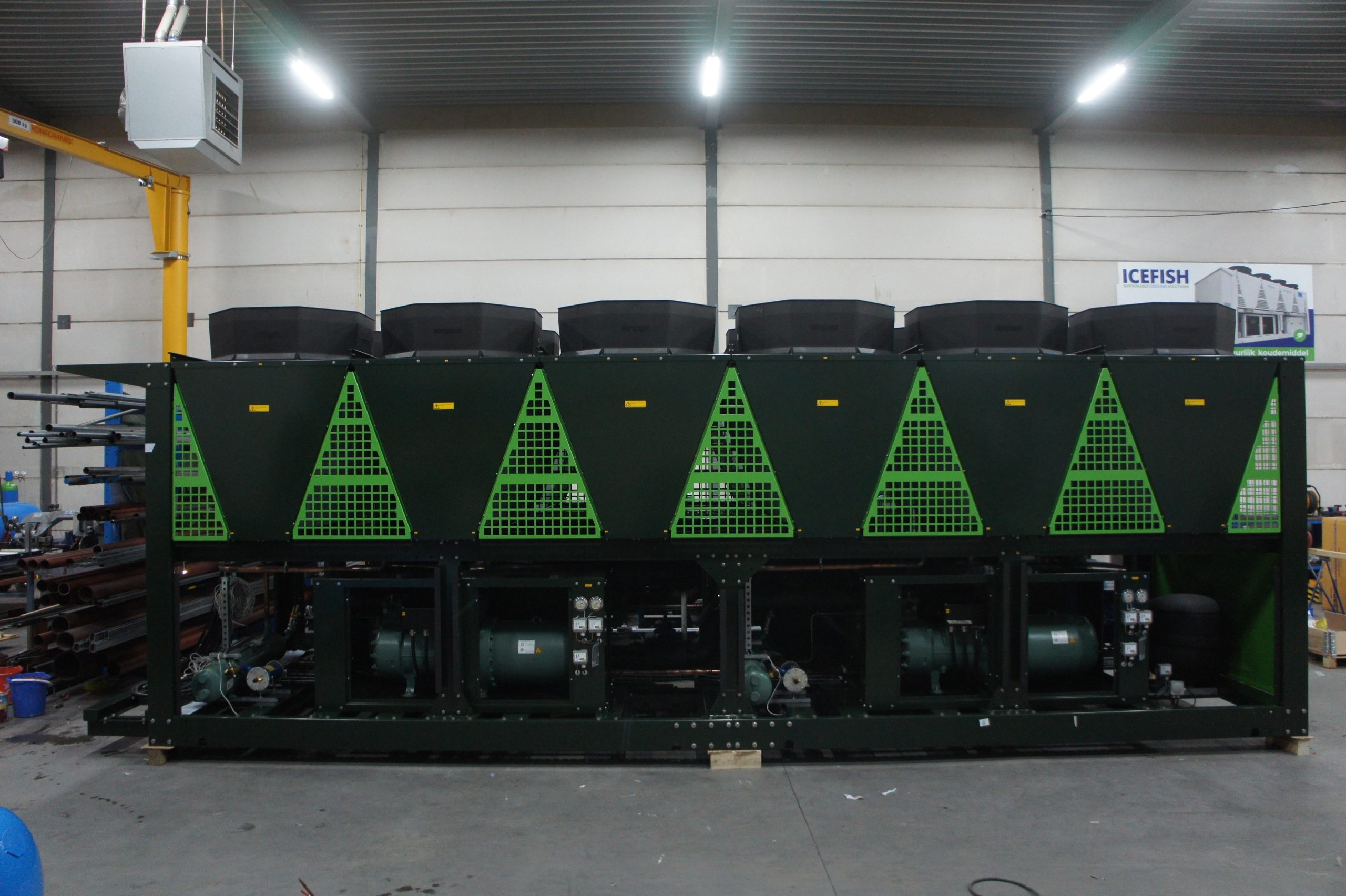 De meeste machines leveren wij in de agrarische sector en dan met name voor de geconditioneerde opslag van bijvoorbeeld aardappels, uien, sla, tulpenbollen en ga zo maar door, vervolgt Lelieveld. “We werken daarbij zoveel mogelijk met natuurlijke koudemiddelen en vooral R290 (propaan). Het voordeel van een indirecte koudwatermachine is dat elke ‘loodgieter’ de machine kan aansluiten. Er is hiervoor geen koeltechnicus nodig. Een indirecte koelunit/warmtepomp van Icefish heeft in combinatie met R290 een zeer beperkte koudemiddelinhoud. Voor een unit van 400 kW bij -6 °C koelvermogen en een dubbelkoudemiddelcircuit, is slechts 45 kilogram R290 per circuit nodig. Dat is minimaal, zeker in vergelijking met een chemisch koudemiddel. Tot slot kun je met een indirecte koudwatermachine/armtepomp, het koelen of verwarmen van het proces veel makkelijker en nauwkeuriger regelen/naregelen.”