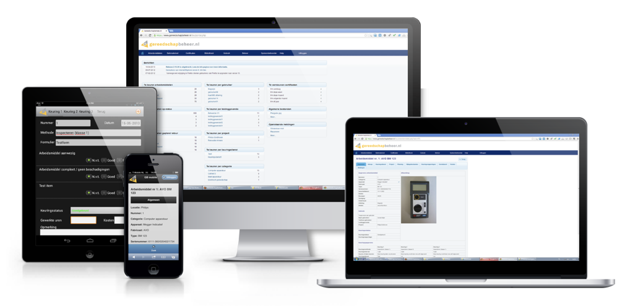 Veel bedrijven raken op een bepaald moment het zicht kwijt op hun materieel. Zeker als de aantallen toenemen. Met Gereedschapbeheer.nl houd je altijd overzicht. Dit betreft de locatie, de keuringsstatus, het onderhoud en de kosten van het materieel. Deze alles-in-één oplossing beschikt over een aantal interessante modules. Die maken de online applicatie geschikt voor zeer uiteenlopende doelgroepen, zoals bedrijven in de bouw- en installatiebranche, maar ook inspectie- en keuringsinstanties.