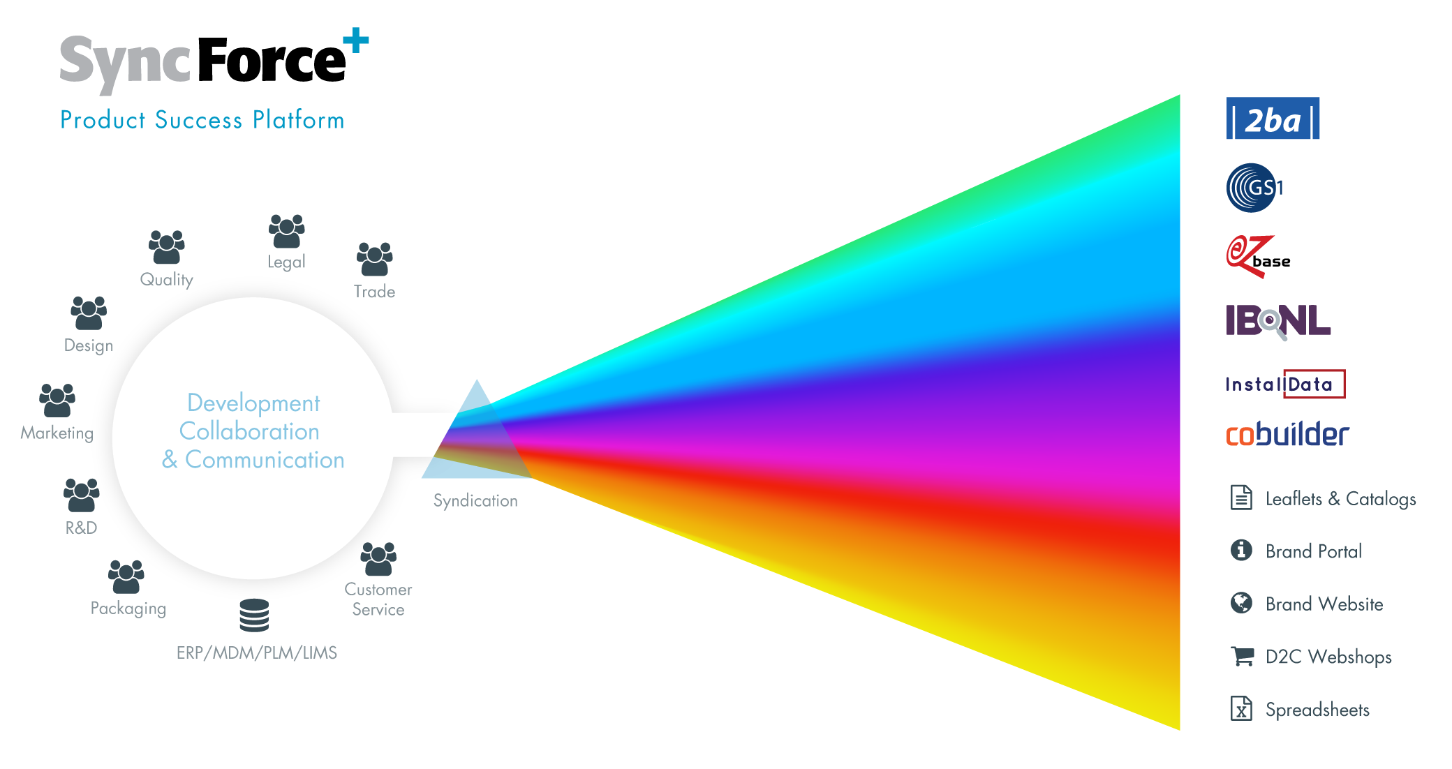 SyncForce helpt fabrikanten bij het verbeteren van hun productontwikkeling en –introducties met het Product Success Platform. De uitdaging voor fabrikanten is steeds flexibel in te spelen op een continu veranderende omgeving. Hoe coördineer je alle wijzigingen in productsamenstelling en verpakkingen op zo’n manier dat alle informatie over veranderingen continu digitaal beschikbaar is? Elke wijziging in productsamenstelling (door bijvoorbeeld trends vanuit de eindgebruikers of milieu- en duurzaamheidseisen) heeft immers een impact op de rest van het product en op de verpakking. De informatie over deze voortdurende wijzigingen moet op elk moment beschikbaar zijn voor alle afdelingen en kanalen. Waar voorheen oplossingen werden gezocht per bedrijfsonderdeel, biedt SyncForce nu de totaaloplossing waarmee de volledige levenscyclus van product en verpakking wordt ondersteund, van concept tot het eindproduct, beschikbaar in alle mogelijke kanalen.