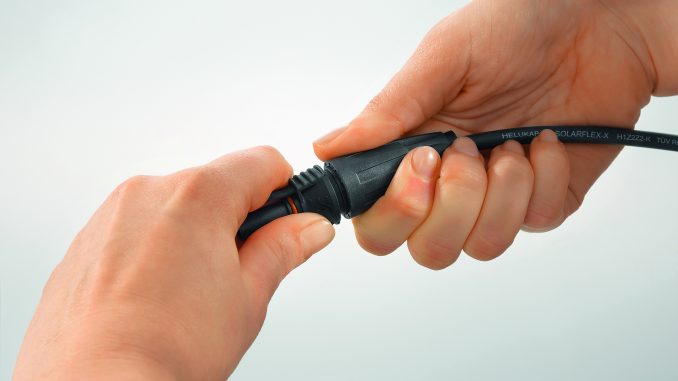 Om installateurs op solargebied volledig te kunnen ontzorgen, heeft Helukabel samen met Weidmüller het Solar pakket samengesteld. Ritzen: “Het pakket bestaat uit onze SOLARFLEX® kabel in combinatie met de PV-Stick van Weidmüller. De handige connectoren met push-in aansluiting hebben een stevige grip, zelfs bij winterse temperaturen. Ze kunnen zeer snel en eenvoudig worden geïnstalleerd zonder krimptool. Het is een kwestie van onze kabel strippen, in de PV-stick steken en vergrendelen met een klik. Het garandeert te allen tijde een optimale en betrouwbare verbinding tussen kabel en connector, een belangrijk aspect in de solarwereld. Op die manier behoren montagefouten tot het verleden en wordt veel tijd bespaard. De PV-connectoren zijn TÜV-goedgekeurd en voldoen aan IEC 62852.”
