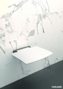 Douches, kranen, wastafels, meubelen, douchezitjes, grepen, … de nieuwe generatie aangepaste producten voor personen met een beperkte mobiliteit maken steeds meer deel uit van het algemene aanbod. Deze producten worden voorgesteld in showrooms en spreken zowel particulieren als projectleiders van publieke gebouwen aan. Deze laatsten hebben niet alleen meer aandacht voor comfort en welzijn, maar zijn ook gevoeliger voor vormgeving en materiaalkeuze. Design producten ontwikkelen is al lang een prioriteit bij DELABIE. Het laatste voorbeeld hiervan zijn de Be-Line® grepen en opklapbare douchezitjes. Deze hulpmiddelen zijn geschikt voor elke levensfase en bieden veiligheid en comfort. Bovendien dragen ze, dankzij hun esthetische eigenschappen, bij tot een aangenaam en gedeeld gebruik van sanitaire ruimtes voor iedereen.