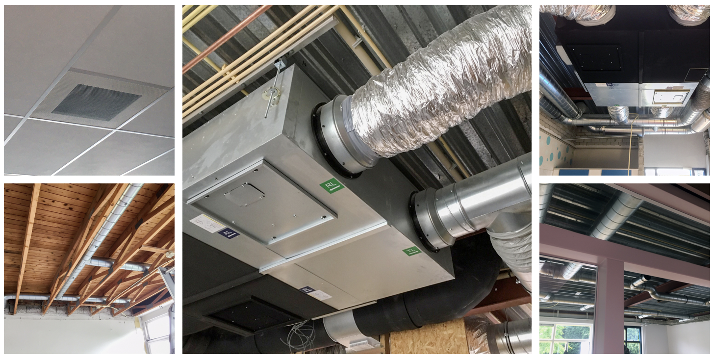 Voor de renovatie van de basisschool in Roosendaal is gebruikgemaakt van warmteterugwinunits (WTU) van Orcon. Dit is een mechanisch ventilatiesysteem met een zeer hoge capaciteit (ruim boven de voorgeschreven Frisse Scholen eis) en warmteterugwinning op basis van een warmtewisselaar. In de warmtewisselaar wordt de warmte uit de ‘vervuilde’ lucht van binnen overgedragen aan de ‘verse’ lucht van buiten zonder dat de luchtstromen zich kunnen vermengen. In de Orcon WTU (WarmteTerugwinUnit) wordt bovendien met een enthalpiewisselaar naast warmte ook vocht teruggewonnen.