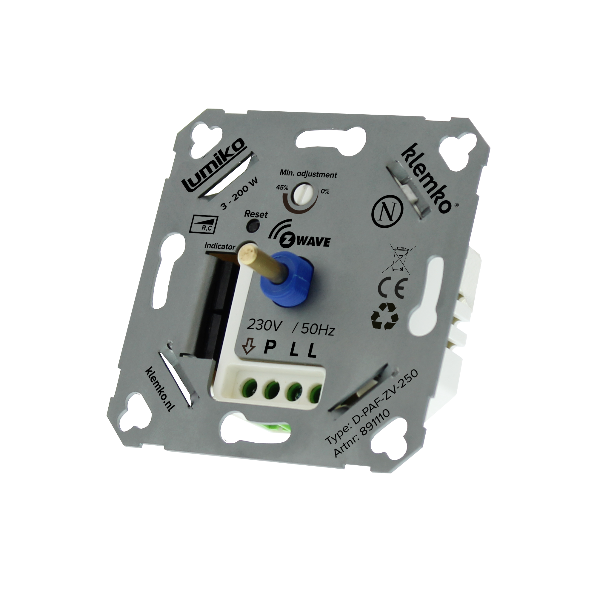 Ons programma aan universele dimmers maakt gebruik van unieke software die de belasting meet en het programma daarop afstemt, zegt Nick van de Klundert van Klemko. “Het is daarmee mogelijk om LED’s tot 100 Watt te dimmen naar een zeer laag niveau zonder dat de verlichting gaat knipperen. Een relatief nieuwe ontwikkeling is onze duo-dimmer, in feite een 2-in-1 concept in één behuizing voor zowel fase aan- als fase-afsnijding situaties. De installateur hoeft dus maar één dimmer op voorraad te houden en zet de dimmer afhankelijk van de situatie in de juiste stand. De dimmer past zich dan automatisch aan.”
