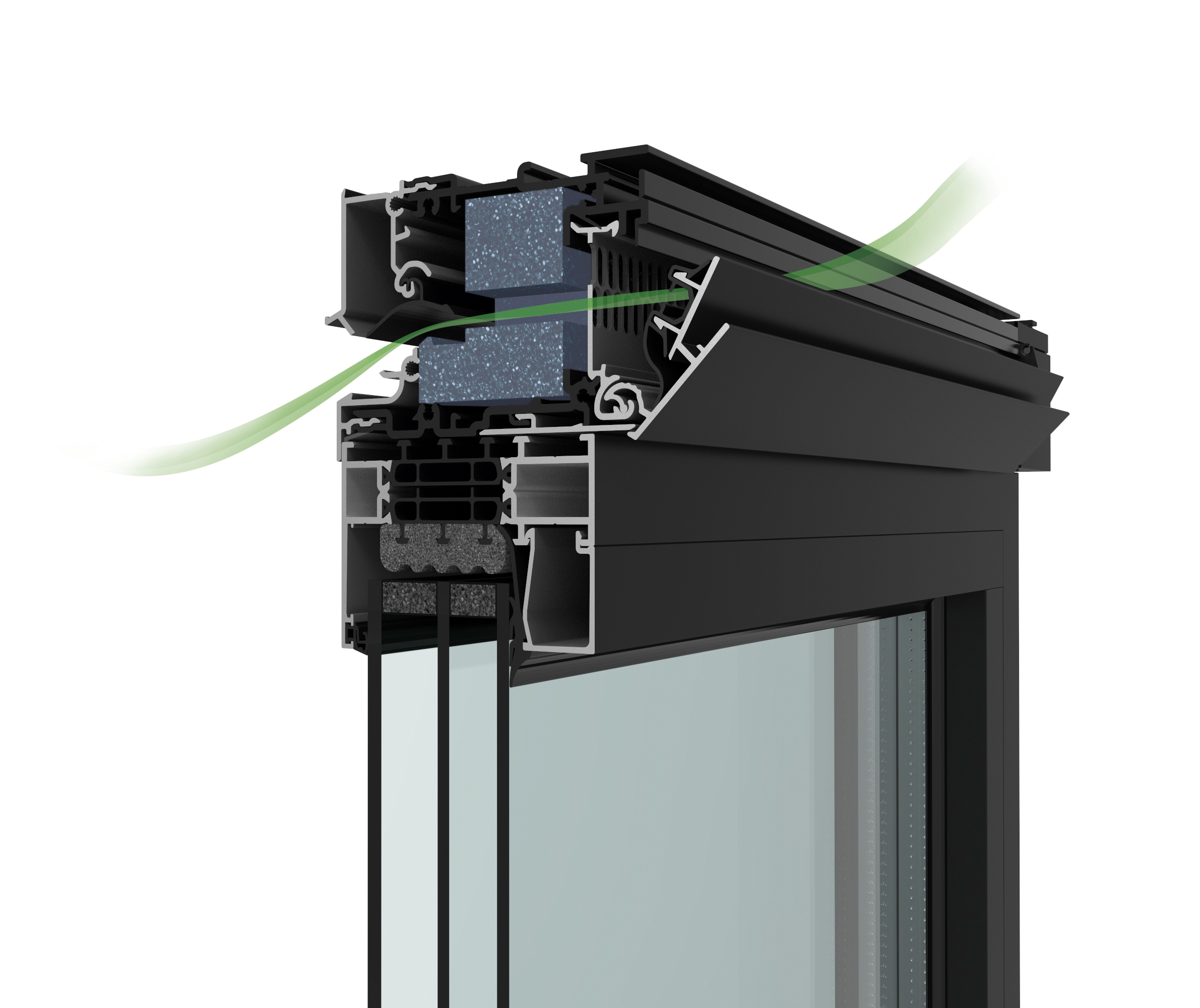 Als het gaat om natuurlijke ventilatie scoort Renson met Invisivent raamventilatie hoge ogen, zowel op het vlak van esthetiek als van prestaties. “Het rooster wordt mooi weggewerkt in het kozijn en voorkomt koudeval,” zegt Breukels. “De Healthbox 3.0 meet op zijn beurt 24 uur per dag de luchtkwaliteit per ruimte op basis van CO2- of vochtgehalte en geuren. Zolang de luchtkwaliteit in een ruimte goed is, wordt het ventilatieniveau niet verhoogd. Dit zorgt voor een maximaal comfort en maximale energiebesparing. Datzelfde vraaggestuurde ventileren doet de Renson Endura Delta voor D-systemen. In combinatie met onze Nightcooling roosters wordt op warme dagen (koelere) nachtlucht aangezogen om een woning intensief te kunnen koelen. Dat maakt een energievretende airco overbodig, zeker wanneer die gecombineerd worden met buitendoekzonwering. Dat is de meest efficiënte manier om zonnestralen te weren nog voor die het glas bereiken, zonder in te boeten aan zicht naar buiten.”