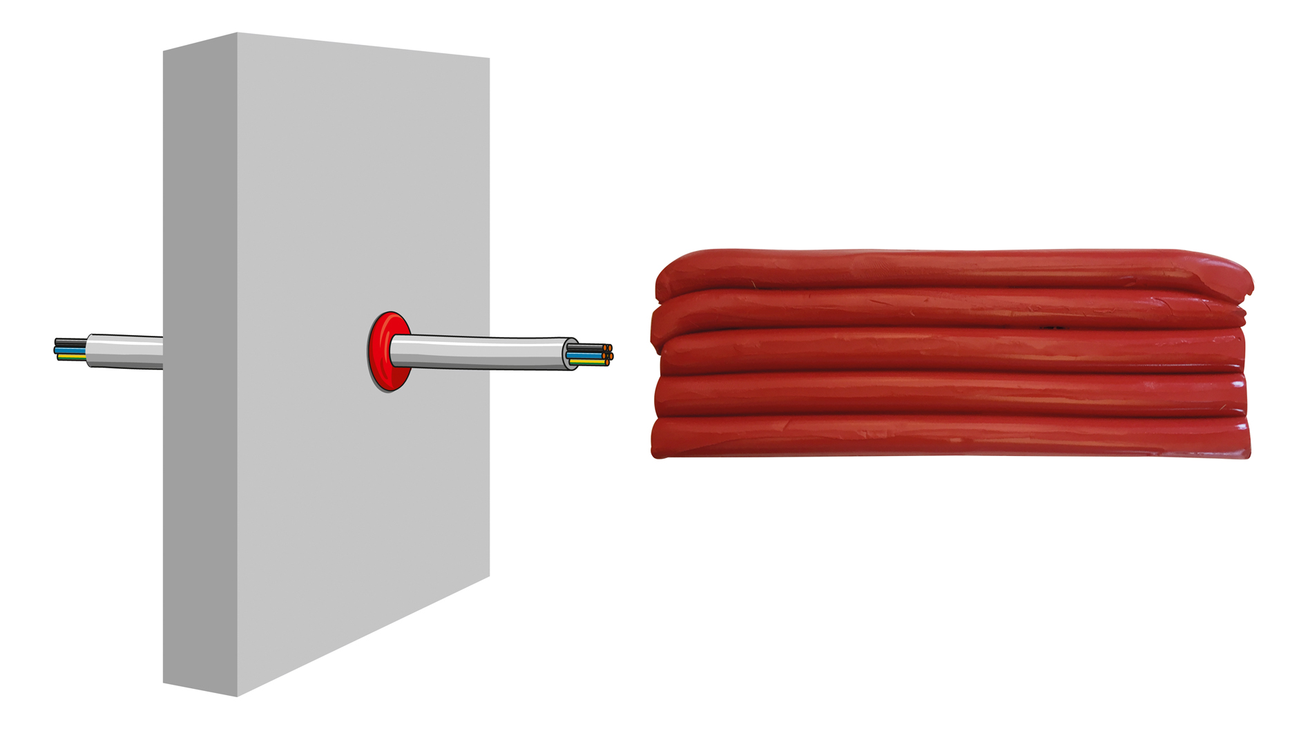 De heren vestigen de aandacht op verschillende systemen zoals de manchetten, brandwerende stenen in combinatie met een combi schuim, het mineraalplaat systeem en het nieuwe Putty Koord. Een kneedbaar brandwerend koord voor het brandveilig afdichten van kabels en buizen tot EI 240. “Een gecertificeerde toepassing, goed voor vijftig jaar zekerheid”, weet Van de Laak. “Het is niet alleen duurzaam maar ook eenvoudig aan te brengen.” Hij verwijst naar een bijbehorende brochure waar overzichtelijk uitleg over het Putty Koord wordt verschaft.” Op een ‘landingspagina’ op internet kan de installateur alles vinden over de toepassing. “Indien nodig ondersteunt een technisch adviseur.”